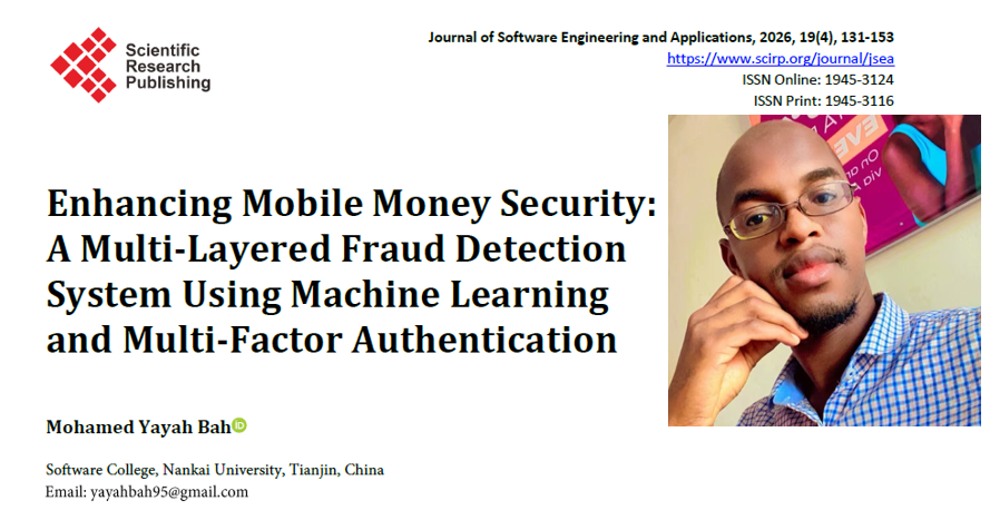 (通讯员 楚义芳)近日,2024级商务部援外班又传喜讯,塞拉利昂留学生亚雅(Mohamed Yayah Bah)的学术论文《增强移动货币安全性:一个使用机器学习和多因素身份验证的多层欺诈检测系统》(Enhancing Mobile Money Security: A Multi-Layered Fraud Detection System Using Machine Learning and Multi-Factor Authentication)在国际期刊《软件工程与应用》2026年4月刊正式发表。