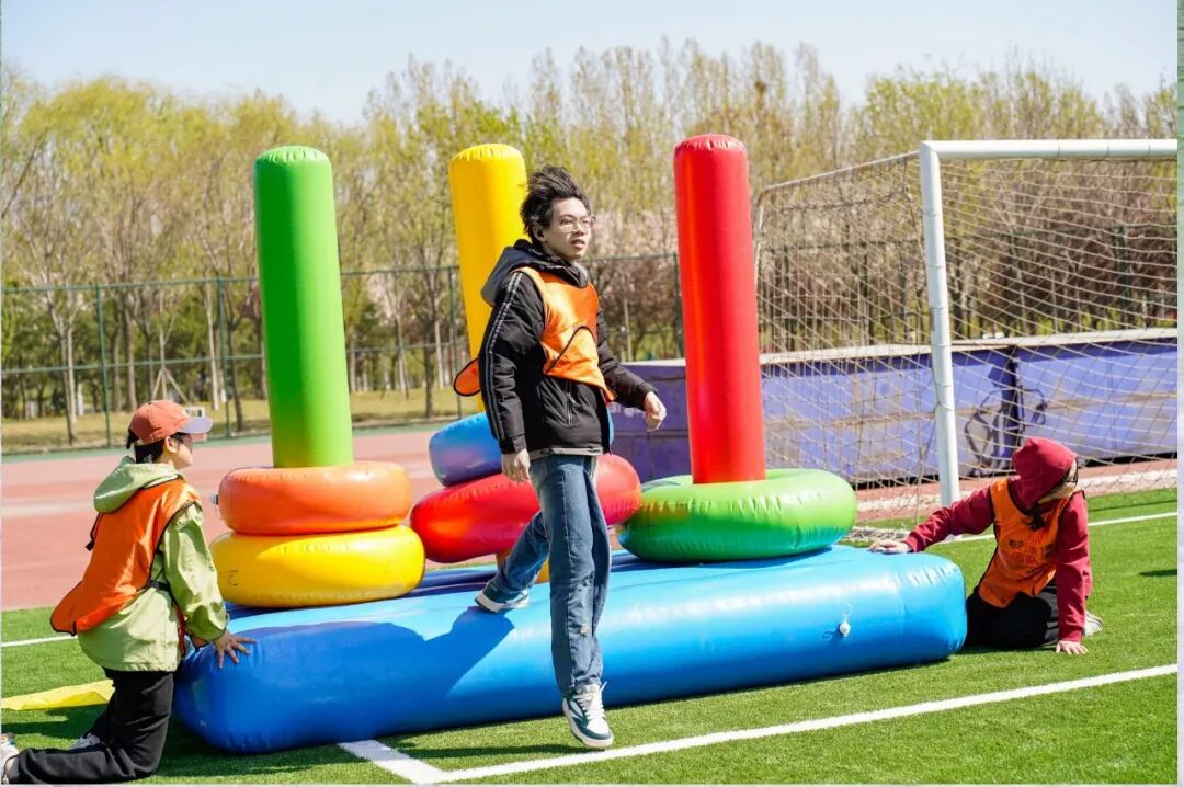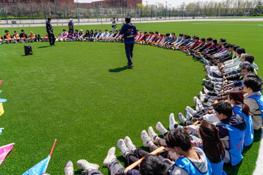 热身结束后,同学们被分为16个小组,各小组迅速投入到队名、队徽和口号的创作中。大家各抒己见、集思广益,从队名的构思到队徽的设计,再到口号的凝练,每一个环节都凝聚着团队的智慧与创意。随后,活动进入核心的项目体验环节,每4组组成一个方阵,在互相对抗、互有输赢的竞技氛围中,每组依次体验两个特色项目,在实践中锤炼协作能力、凝聚团队智慧。